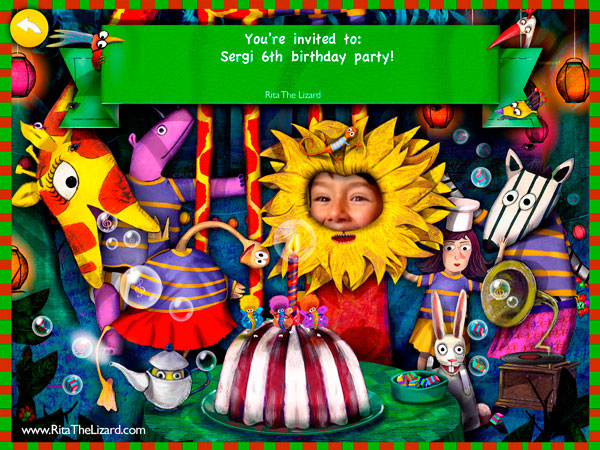 Do not miss this fun personalized invitation surrounded by Rita and her friends ! Take a picture of yourself and surprise your friends with your lion costume !